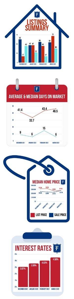 Interest rates continued to rise in March, which ended the month at 4.50%. The rising interest rates also helped drive demand as buyers wanted to capture the lowest possible rates. We are expecting interest rates to continue to rise marginally as the federal reserve continues to try and combat the inflation we’re seeing across the economy. It’s hard to say at what rate buyer activity softens, but historically, 4.50% is still low and buyer demand remains strong.