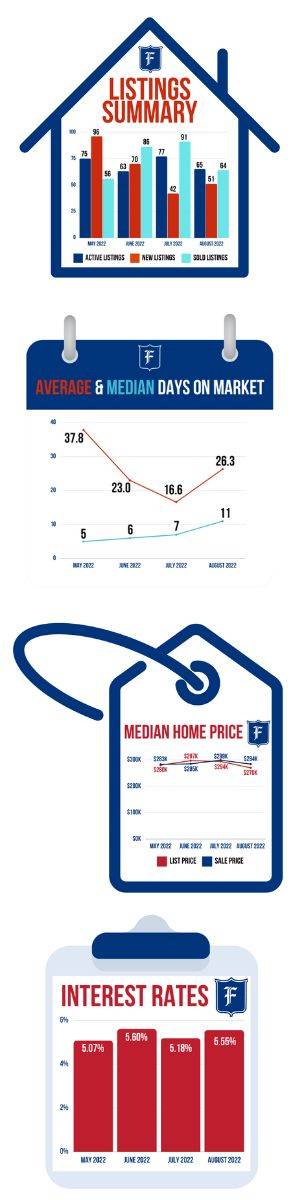 Interest rates in August hoovered around the 5.5 to 5.75 mark. While still low in a historical context, it is a significant difference from the 3% rates we saw to start the year. That 2.5% increase has reduced the buyer pool and created a healthier market overall. Even with the decreased buyer pool, house prices in Ames are still appreciating. Year-to-date, the median sale price has increased 5.3%