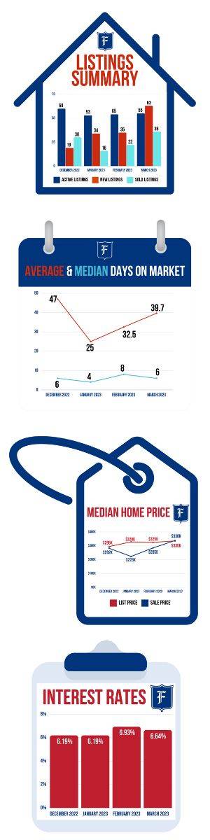 The Ames Market saw an almost 40-percent increase in new listings and sold listings in March compared to February. We also saw an increase in the median list price and median sale price. Some of the increased activity could be attributed to interest rates, which were friendlier in March. The Federal Reserve seems resolute continue its battle with inflation that we’ve seen over the past year, but may need to apply caution in view of over-shooting and doing unnecessary damage to the financial markets in the wake of recent bank failings — Silicon Valley Bank, namely. Balancing these opposing economic concerns will likely keep rates in a state of limbo near term.